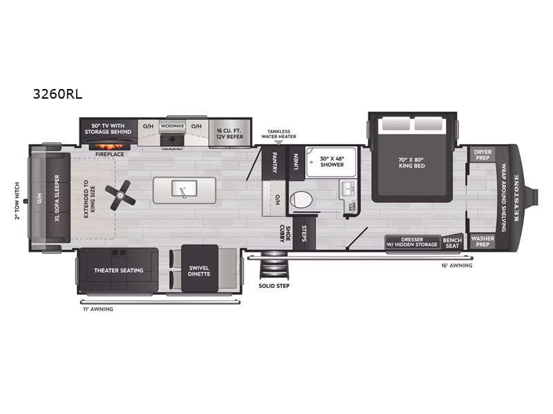 Keystone RV Arcadia fifth wheel 3260RL highlights: