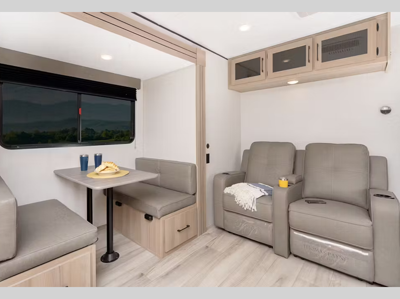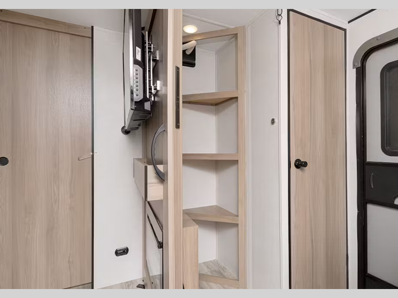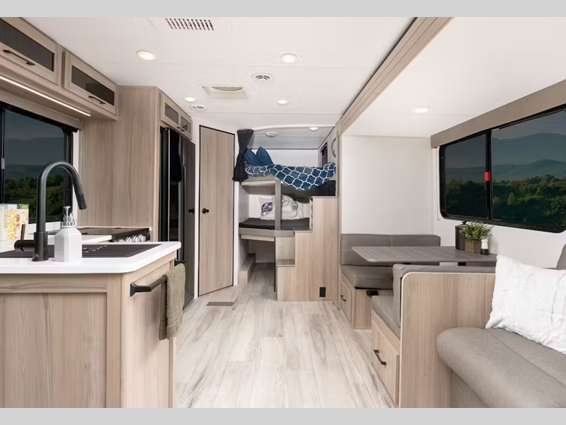 Sleeps 3 Slides 1 Length 29 ft 11 in Ext Height 11 ft 2 in Hitch Weight 710 lbs Dry Weight 6261 lbs Cargo Capacity 1439 lbs Fresh Water Capacity 54 gals Grey Water Capacity 68 gals Black Water Capacity 34 gals Tire Size ST215/75R14D Furnace BTU 35000 btu Available Beds King Refrigerator Type 12V Refrigerator Size 16 cu ft Convection Cooking Yes Cooktop Burners 3 Shower Size 30" x 40" Number of Awnings 1 LP Tank Capacity 20 lbs Water Heater Type Tankless AC BTU 15000 btu TV Info LR 65" LED Smart TV Awning Info 18' Power Number of LP Tanks 2 Shower Type Standard Similar Floorplans