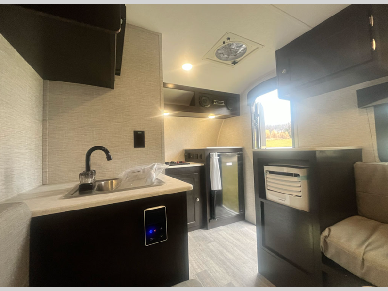 - Integrated sink with 26 gallon fresh water tank and 12V water pump (10LT, 12LT only)